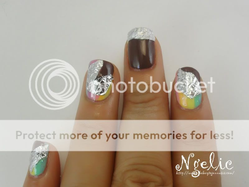 ... Funny thing was, I was going to stamp on butterflies and roses then layer nail decals sticker on top but I had left my stamper and scrapper back at home! Oh my.
